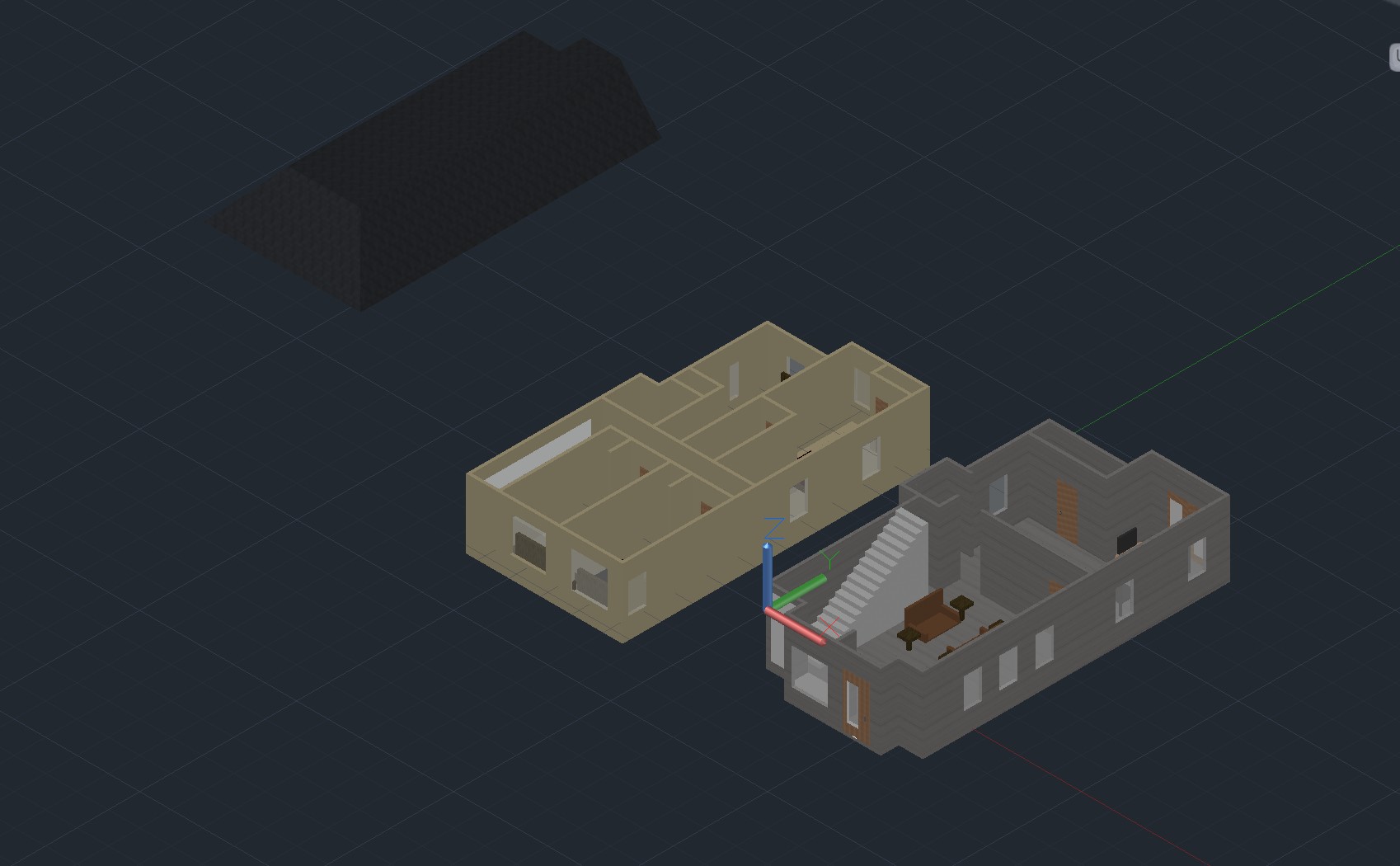 This was first house design in my engineering graphics class. We used AutoCAD to design all the components of a house, including scale-based rooms, roof, windows, doorways, stairwell, etc.